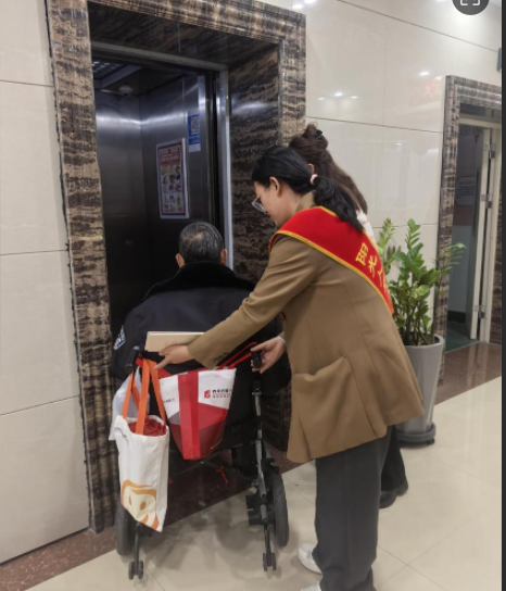 业务办理完毕后,考虑到老人乘坐轮椅出行不便,党员先锋岗与“小橙大爱”志愿者一路护送老人至电梯口,细心协助其安全乘梯,并陪伴护送至大楼门外,再三确认行程安全后才挥手道别。这场从业务办理延伸到人文关怀的全程守护,生动诠释了“服务无止境”的深刻内涵。
