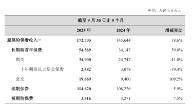 在负债端,保险业务同样展现出稳健增长与结构优化的双重特质。2025年前三季度,新华保险实现原保险保费收入1727.05亿元,同比增长18.6%。