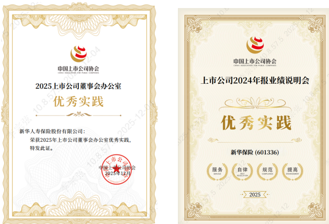 河北理财网综合(刘杰)近日,新华保险(A股代码:601336,H股代码:01336)获奖频频——分别在中国上市公司协会、财联社等主办的评选中荣获“上市公司董事会办公室优秀实践”“上市公司2024年报业绩说明会优秀实践”和“最佳市值管理董秘”三项殊荣,公司高质量发展与价值增长成果以及公司治理、信息披露和投资者关系管理工作获得市场充分肯定。