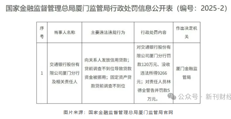 河北理财网综合(丹青 刘杰)河北理财网从监管部门官网获悉,交通银行2025年吃下的“天价罚单”,此罚单在处罚力度、追责范围和公示期限上都有着鲜明的特点,是金融监管“聚焦基础合规、强化穿透式追责”逻辑的具象化,释放了严监管常态化、精准化的强烈信号。