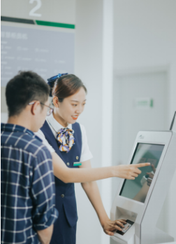 图:柜面服务人员向市民介绍自助服务