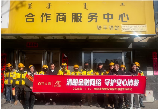 2026年3月5日,百年人寿内蒙古分公司组织员工开展“慰问送真情·关爱暖人心”慰问外卖骑手活动,为外卖骑手送上慰问品与金融安全知识,用实际行动传递企业温度。