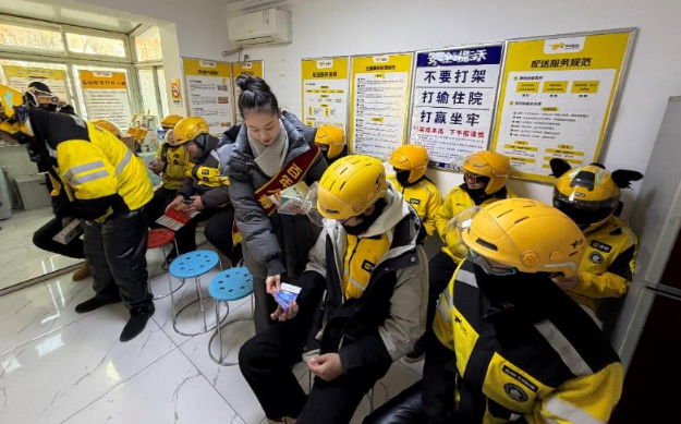 百年人寿大连分公司金融宣教团携手社区工作人员,开展专为外卖小哥量身打造的金融知识普及活动,用实用干货为奔波在寒风中的劳动者送上特别关怀,为城市传递温暖。