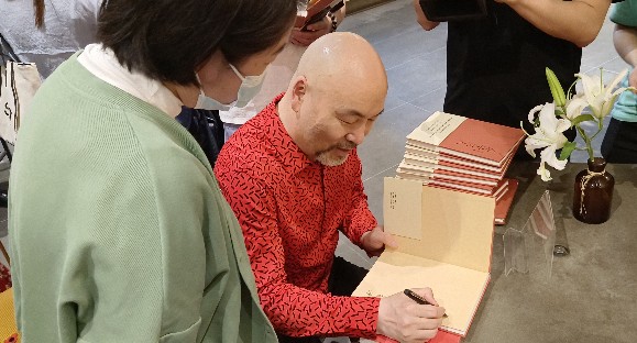 签名售书现场一片火爆,与窗外灿烂绽放的栀子花相映成趣。
