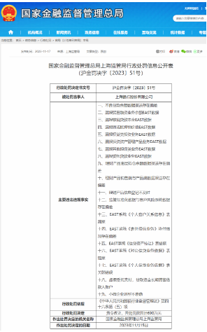 河北理财网综合(丹青)河北理财网获悉,国家金融监管总局网站显示,11月17日,上海银行连收两张罚单,涉及32项违法违规事实,合计被罚1380万元。