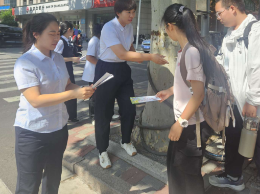 此外,深入开展校园宣传,向中学生普及非法集资相关金融知识。我行位置距离栾城区五中较近,我行利用学生放学时间段组织开展宣传,主要宣传对象为中学生及来往人群,以学生为点向家庭传输相关知识,通过发放折页,现场讲解等形式讲解,普及防范非法集资知识。