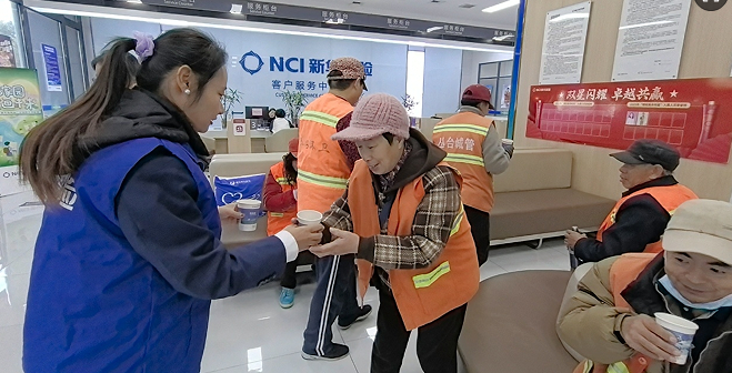 在10月26日“环卫工人日”即将来临之际,为表达对环卫工人的深切关怀与崇高敬意,新华保险邯郸中支志愿者们邀请人民路街道环卫工人来到公司客服大厅品尝热气腾腾的雪梨银耳汤,并为他们送上暖绒绒的保暖帽,用实际行动为可爱的人们送去冬日的温暖与守护。
