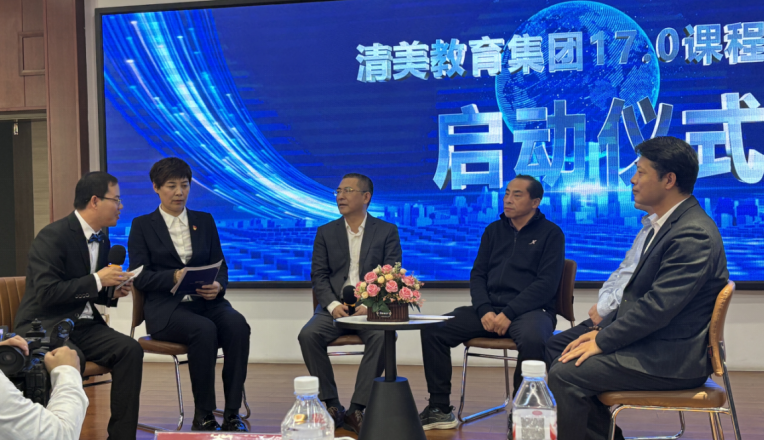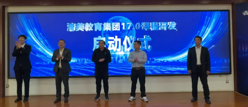 15:10,整个仪式的核心环节——V17.0课程研发启动仪式正式到来。在全体与会人员的共同见证下,主礼嘉宾们一同启动了象征创新与未来的启动装置,标志着清美教育集团V17.0课程研发工作全面启动,现场彩带纷飞,掌声雷动。