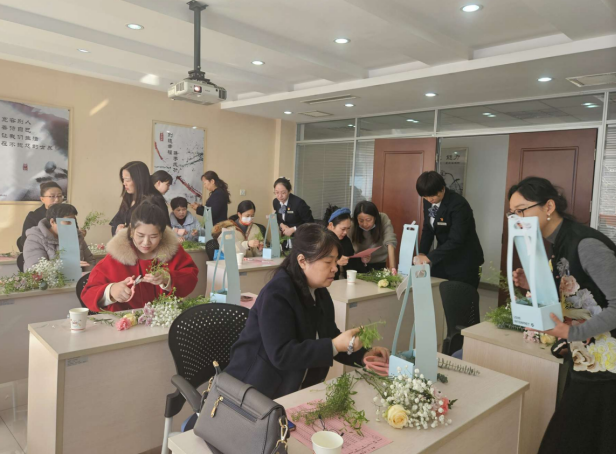 花艺体验环节将活动推向高潮。专业花艺师现场授课,从花材选择、色彩搭配、造型设计等进行了细致入微的讲解与演示。在老师的指导下,客户们兴致勃勃地投入创造,将一朵朵鲜花化作独具匠心的花艺作品,现场氛围轻松而热烈。活动尾声,客户们手捧作品合影留念,脸上洋溢着满满的成就感。不少客户表示,此次活动不仅学会了插花技巧,更收获了实用的财富知识,真切感受到了张家口银行栾城支行与中国人寿的贴心服务。