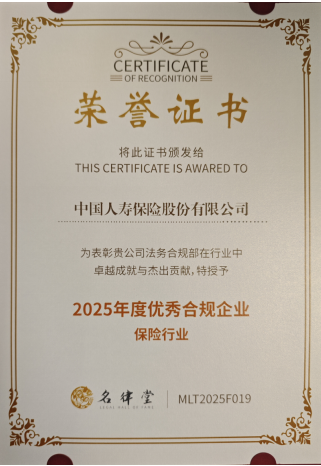河北理财网综合(刘杰)近日,在国内法律行业交流平台名律堂组织的“2025年企业合规先锋榜”评选项目中,中国人寿保险股份有限公司(以下简称“中国人寿”,股票代码:601628.SH,2628.HK)荣膺保险行业“2025年度优秀合规企业”。