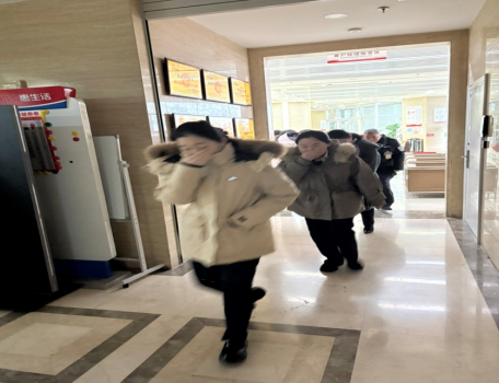 此外,还模拟演练了突发火情下的疏散逃生,演练开始,警报声响起,按照“捂鼻、弯腰、靠墙走”的逃生要领,全体员工迅速反应,沿预定消防疏散通道快速、有序撤离,同时厅堂工作人员组织客户撤离到安全区域。整个演练过程紧张有序,各环节衔接紧密,充分展现了该行员工良好的应急反应能力和协同配合水平。